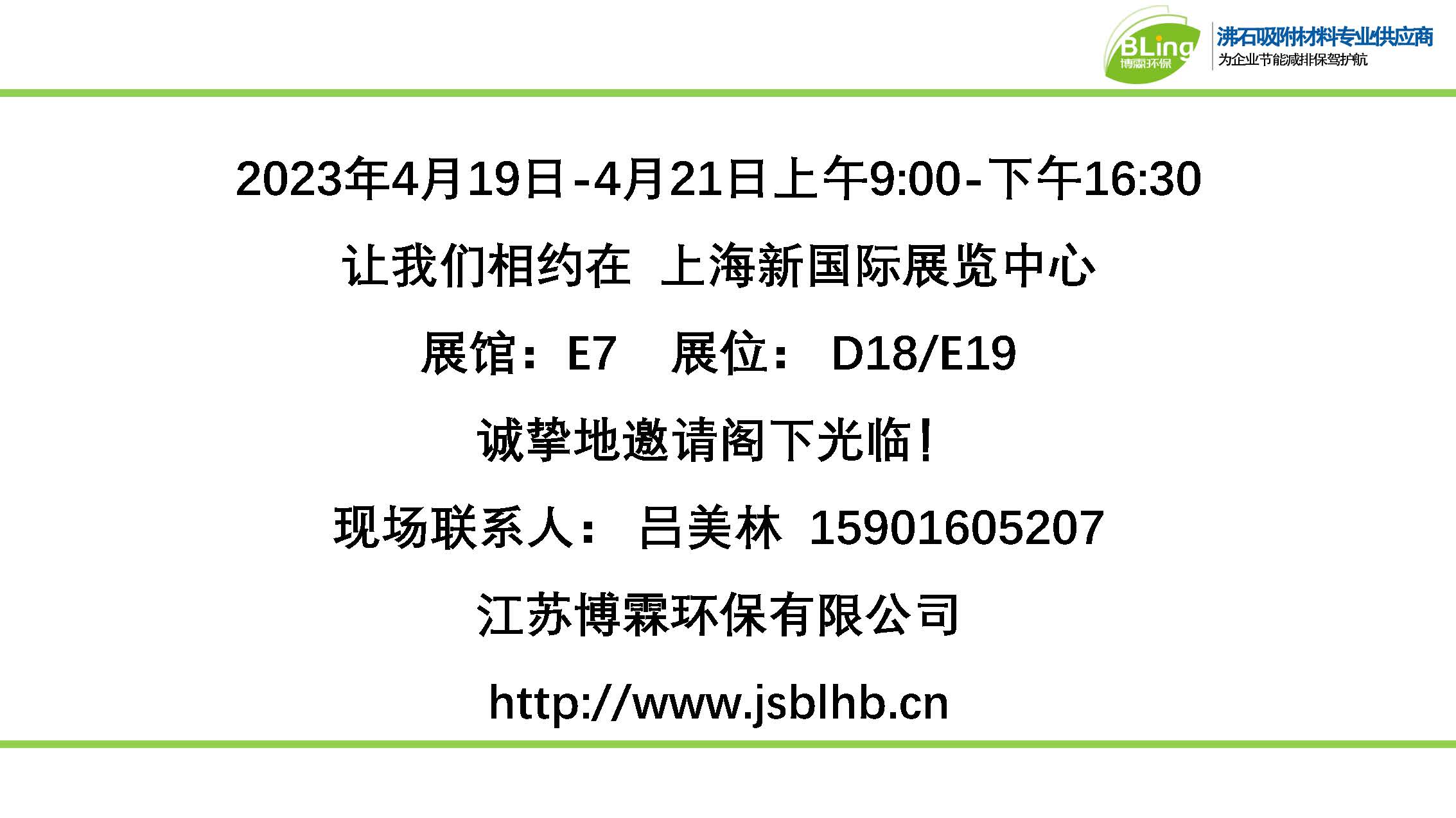 概述:2023年4月19日上海環(huán)博會即將拉開帷幕,江蘇博霖環(huán)保作為此次的參展企業(yè),在這里誠摯地邀請各位光臨我們的展位現(xiàn)場,我們一起探討行業(yè)發(fā)展趨勢,尋求合作契機!